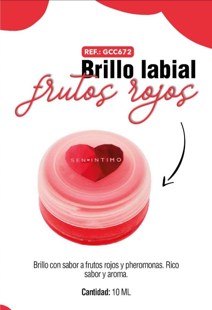 Atrae todas las miradas con este espectacular brillo que, además de darle a tus labios un sensual aspecto, contiene feromonas y un delicioso olor y sabor a frutos rojos, que te harán irresistible para el sexo opuesto.